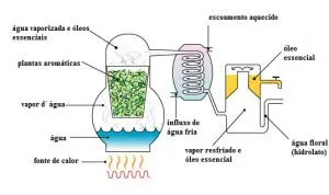Ou seja, no processo de extração do óleo essencial, após a separação, a água floral é extraída no seu estado puro. Mantêm os mesmo componentes voláteis da planta que a originou.